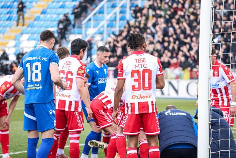 35. minut - Izmena u Zvezdi, debitant Vuk Draškić, golman Srbije do 19 godina menja iskusnog, ali povređenog Mateusa.