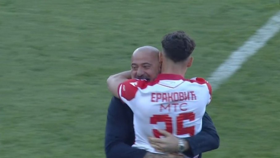 Eraković je potom dotrčao u zagrljaj presrećnog Zvezdinog trenera Dejana Stankovića: