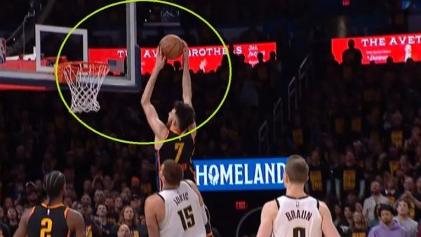 Upravo je to pokušao da iskoristi Čet Holmgren, iskoristio je kontru i krenuo sam na Jokića. I kada se činilo da će MVP prošlosezonskog regularnog dela ući u putanju i napraviti taj faul, on se izmakao, a Holmgren je promašio zakucavanje kakvo se retko viđa.
