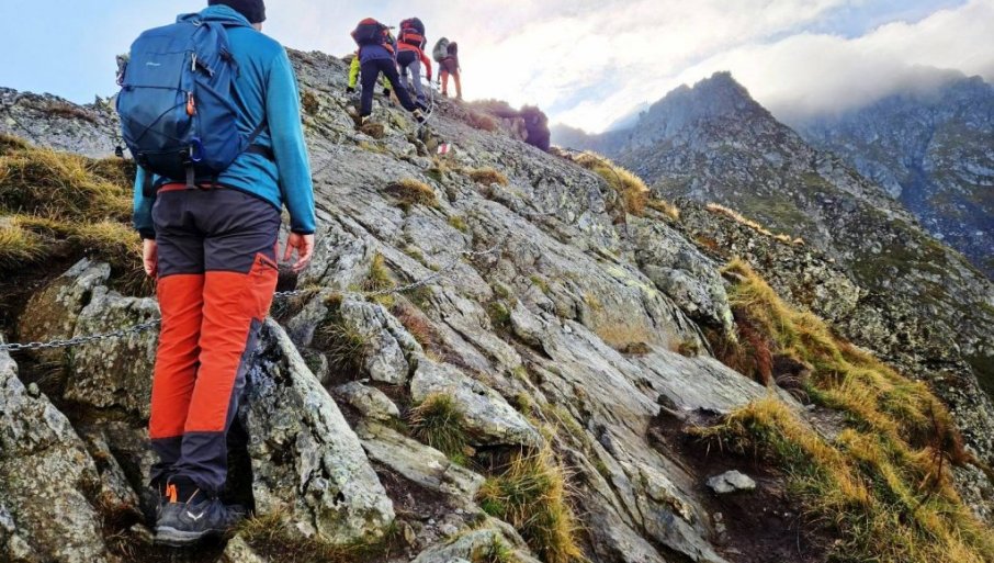 - Nastavili smo jako eksponiranom deonicom, na par mesta obezbeđenom lancima. Ništa strašno, ali dovoljno da nas razdrma iz jutarnje pospanosti. Izlaskom na greben ukazao nam se masiv Karpata u svoj svojoj lepoti, ali se vrh nije nazirao. Nastavili smo dalje grebenskom krestom, napravivši pauzu kod jezera... Do krajnjeg odredišta nas je delilo još četiri kilometra i baš nam je laknulo kada smo u jednom trenutku ugledali druge ljude jer smo tada znali da se približavamo cilju.