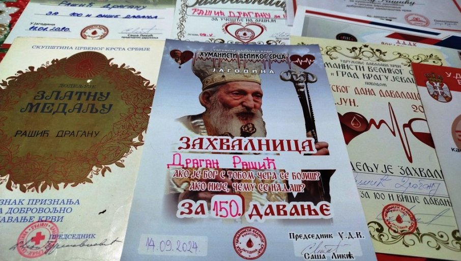 JAGODINAC DRAGAN RAŠIĆ (70), TOKOM PRETHODNIH POLA VEKA, VIŠE OD 150 PUTA DOBROVOLJNO DAO KRV Uvek prvi kad je život o koncu