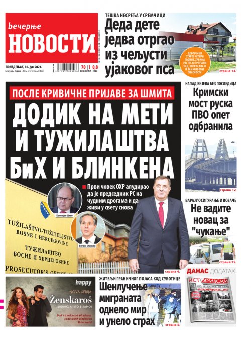 Večernje novosti - Naslovna strana - Štampano izdanje za 10.07.2023.