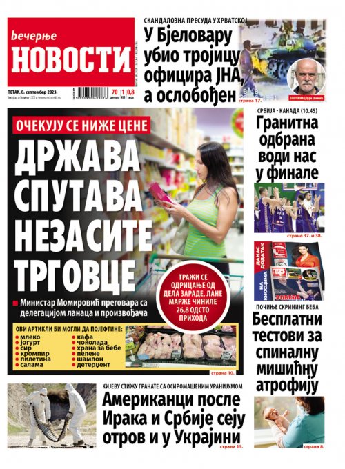Večernje novosti - Naslovna strana - Štampano izdanje za 08.09.2023.