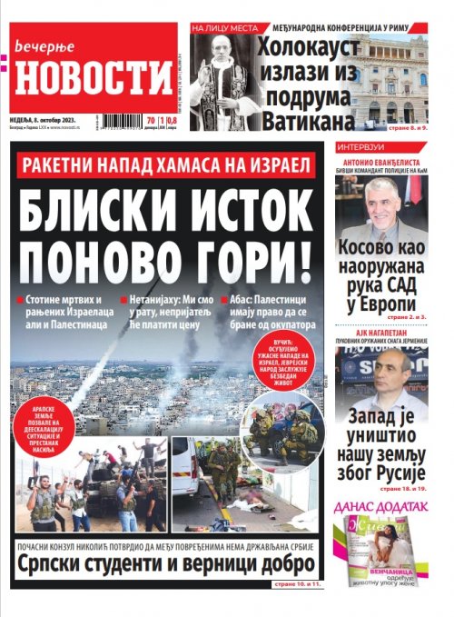 Večernje novosti - Naslovna strana - Štampano izdanje za 08.10.2023.