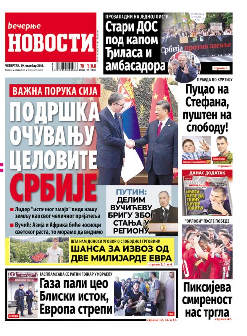 Večernje novosti - Naslovna strana - Štampano izdanje za 19.10.2023.