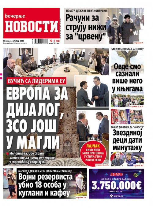 Večernje novosti - Naslovna strana - Štampano izdanje za 27.10.2023.
