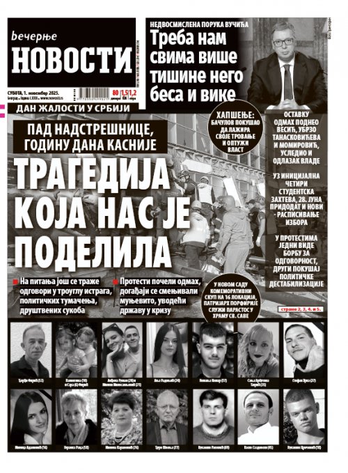 Večernje novosti - Naslovna strana - Štampano izdanje za 31.10.2025.