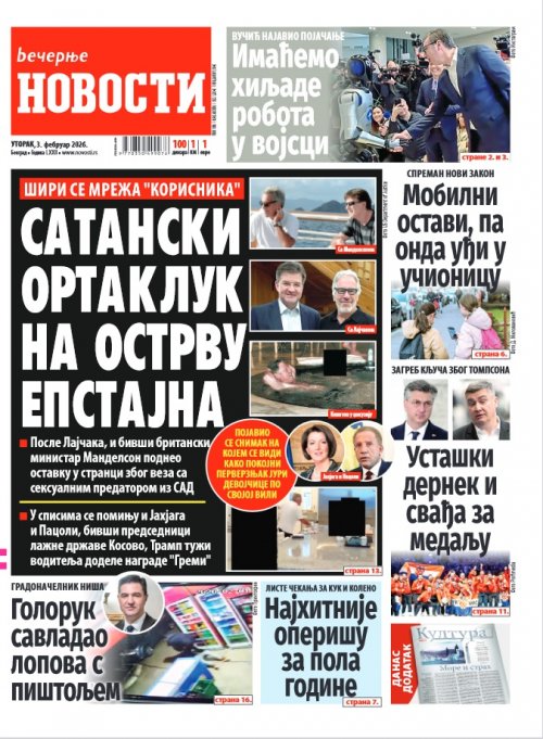 Večernje novosti - Naslovna strana - Štampano izdanje za 03.02.2026.