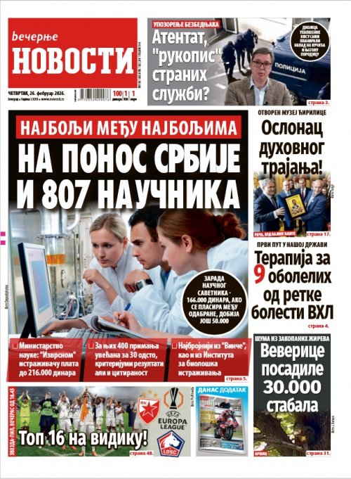 Večernje novosti - Naslovna strana - Štampano izdanje za 26.02.2026.