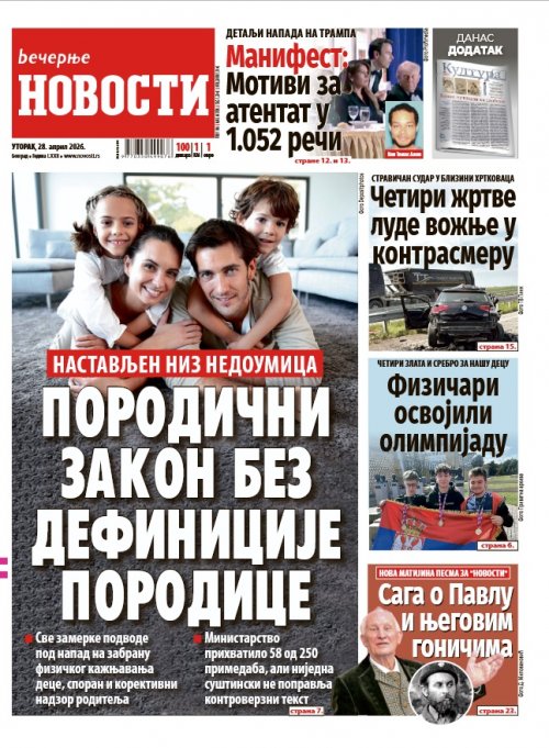 Večernje novosti - Naslovna strana - Štampano izdanje za 28.04.2026.