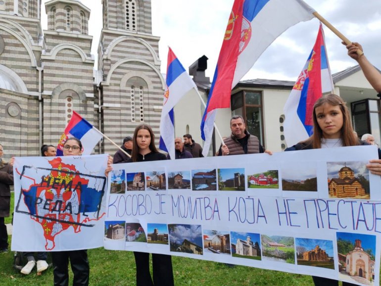 Okupljeni su poslali poruke da žele da uče, rade i slobodno se kreću, ali i da pruže podršku srpskom narodu na Kosovu i Metohiji koje sutra očekuju izbori. Na skupu su okupljeni nosili transparente "Podrška Srbima sa Kosova i Metohije", "Nema predaje", balone u bojama zastave, zastave, a čuje se i rodoljubiva muzika.