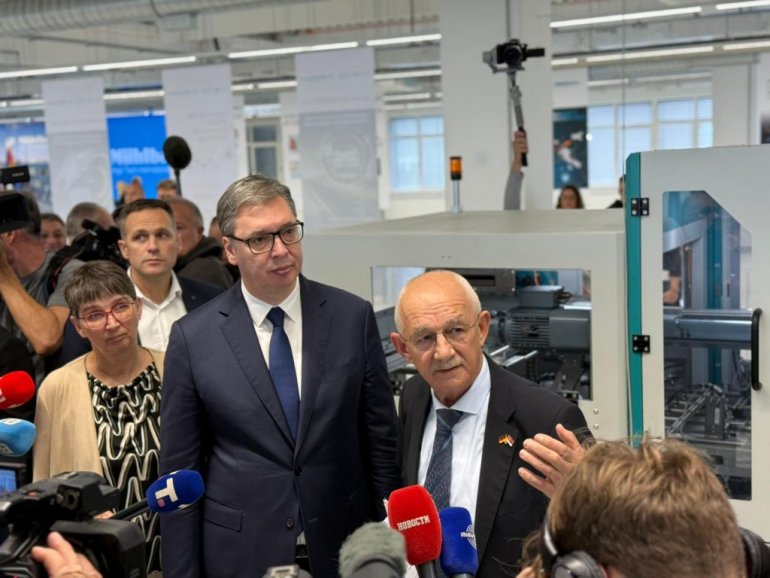 - Nemačka, bavarska tehnologija najbolja na svetu. Otvaraju drugu fabriku, imaju mnogo dobre ljude ovde, što je naše blago. Ja verujem da će da razmišljaju i o trećem pogonu. Voli Jozef Milbauer Srbiju. Ovo je velika investicija, 29,5 miliona evra. Možemo da se pohvalimo da će kod nas da se prave pasoši za 30, 40 zemalja. Godišnje u proseku tri miliona dokumenata izdamo. Zato je svaki napredak u ovom pogledu neverovatno važan. Gledaćemo da preko ovih mašina izdajemo radne dozvole. Nemoguće je da ljudi stignu sve, mašina može sve - rekao je predsednik.