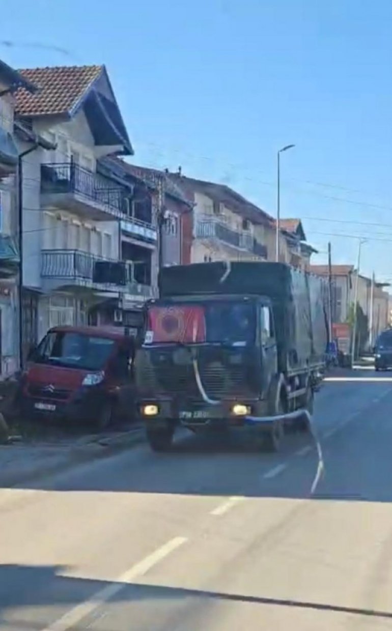 Na jednom od kamiona tzv. Kosovskih bezbednosnih snaga na vetrobranskom staklu bila je istaknuta zastava terorističke tzv. OVK.