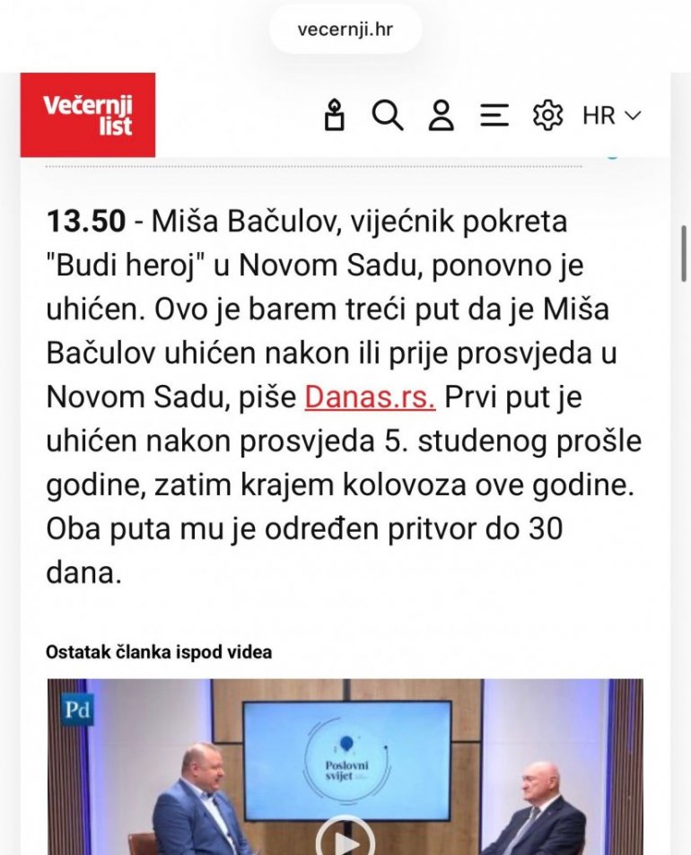 HRVATSKI mediji danas zdušno pružaju podršku uhapšenom blokaderu Miši Bačulovu!