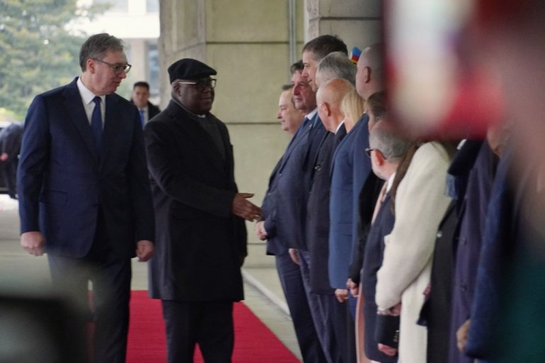 Predsednik Vučić dočekao je ispred Palate Srbija predsednika Feliksa Antoana Čisekedija Čilomba. Predsednik DR Konga dočekan je uz najviše državne počasti, crveni tepih, intoniranje himni dve zemlje i počasni stroj garde Republike Srbije.