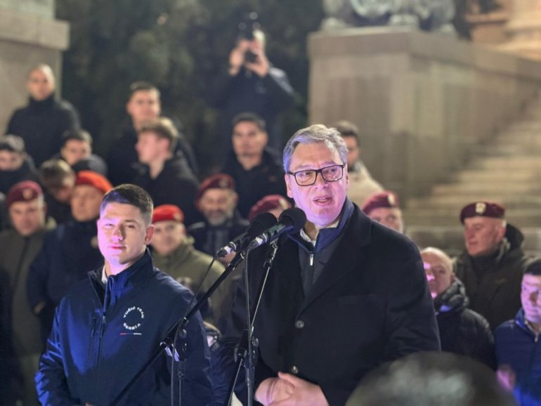 - Naše je da se prema njima nikad ne odnosimo onako kako su oni hteli da se odnose prema nama. Hteli su nas mrtve, ponižene, sklonjene iz zemlje. Mi njih želimo ovde u našoj zemlji, da žive sa nama, da ih saslušamo. Da razgovaramo sa njima, ali da se poštuju demokratska pravila i onaj ko dobije većinu da taj ima pravo da upravlja zemljom, a ne onaj ko misli da može da spali naše gradove, dovoljno ste spalili sve. Uništili ste sve što ste stigli. Borićemo se svi zajedno da pobedi pristojna Srbija. Niste vi čuvali ova mesta i Srbiju zbog mene, već zbog svojih roditelja, dece, nečeg što je vrednije od svakog od nas, a to je otadžbina. Srbin zna kad je otadžbina napadnuta da ustane. Zajednički moramo da sačuvamo zemlju, ta borba mora da bude politička, a ne vojnička. Srbija mora da ide ubrzano napred i zato verujem da će naredna godina biti možda najbolja u istoriji Srbije, kad ćemo da imamo najveće penzije, obezbedimo najveći rast Srbije. Nastavićemo da radimo i da gradimo! - kazao je on.