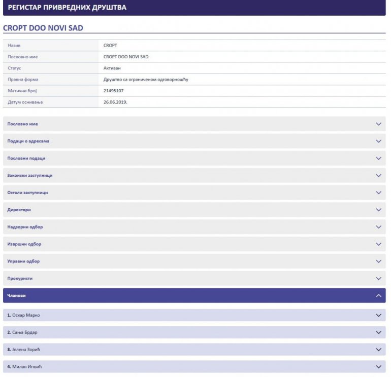 CROPT DOO NOVI SAD je privredno društvo osnovano 2019. godine, sa sedištem u Fruškogorskoj 19, u neposrednoj blizini samog Instituta BioSens. Suosnivači ove firme su dva Crnojevićeva pomoćnika dok je bio direktor: Oskar Marko i Sanja Brdar, koja i direktor ove nezvanične ćerke firme.