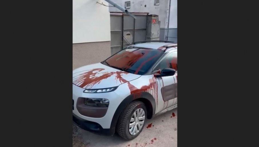 Prema informacijama za sada nepoznato lice je posulo crvenu farbu po njima.