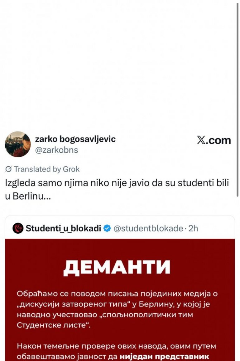 "Izgleda da samo njima niko nije javio da su studenti bili u Berlinu...", napisao je Bogosavljević na mreži Iks.
