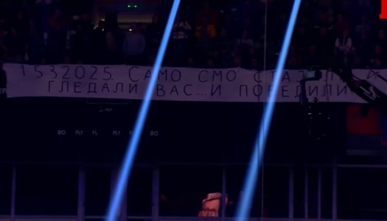 VUČIĆ O TRANSPARENTU U ARENI: Samo ste stajali i pobedili, a Srbiju sačuvali (FOTO)