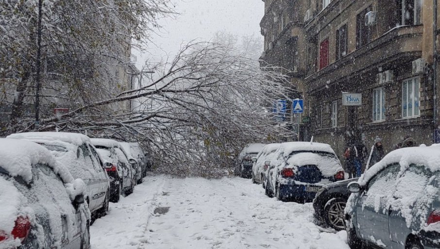 SNEG koji je za kratko vreme pao po Beogradu izazvao je kolaps, rušenje bandera i drveća, te je tako i u Kosovskoj ulici jedno drvo palo preko puta.