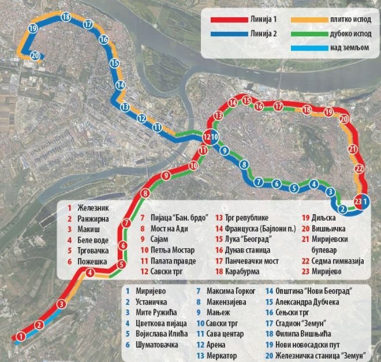 Prva linija biće na potezu Makiš - Mirijevo i imaće ukupno 21 metro stanicu, a u prvoj fazi izgradnje te linije radiće se 17 stanica.