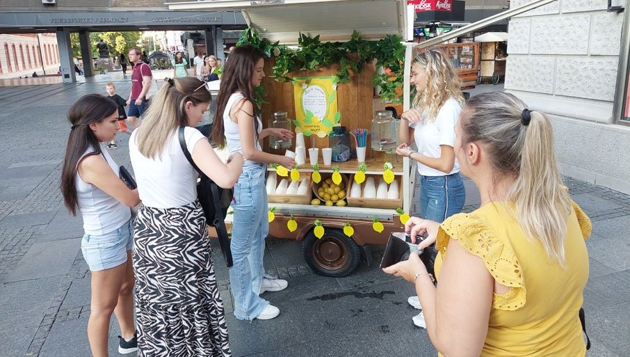 U srcu prestonice, Knez Mihailovoj ulici, žuti štand sa osvežavajućim napitkom privukao je veliku pažnju Beograđana, ali i stranaca koji su u redu stajali kako bi se osvežili i ujedno dali prilog za pomoć mališanima.