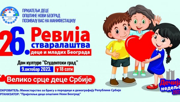 VELIKO SRCE DECE SRBIJE: Revija stvaralaštva dece i mladih sutra u 18 časova