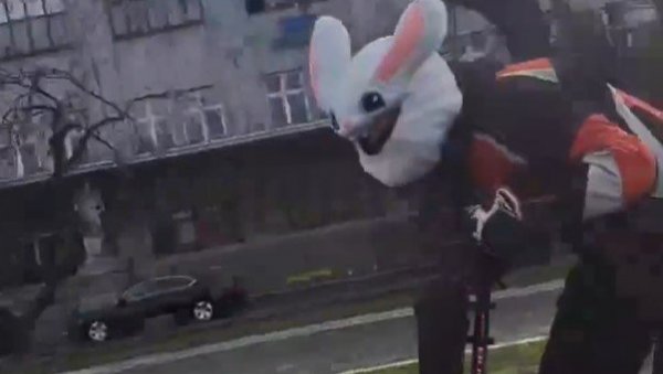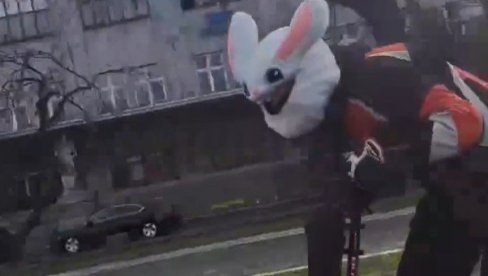 Naime, kako se vidi na snimku na društvenim mrežama, muškarac je stavio masku zeca i na električnom trotinetu se vozio po Beogradu.