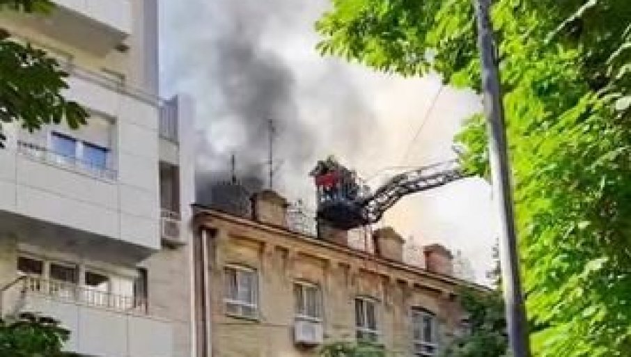 PRVI SNIMCI POŽARA NA DORĆOLU: Gori tavan zgrade - na licu mesta veliki broj vatrogasaca (VIDEO)