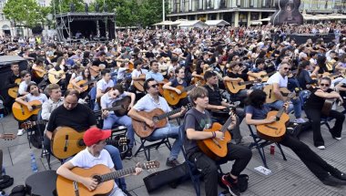 HILjADU gitarista na Trgu republike juče je sviralo rokenrol sa poznatim muzičarima, te su uspeli da postave nacionalni rekord u prisustvu instrumentalista koji sviraju ovaj instrument na jednom mestu u Srbiji.