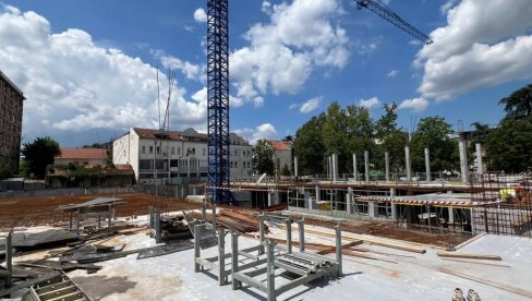 Majstori rade po planu, a na ovoj parceli već se vide prvi delovi garaže, ploče i stubovi koji će da nose krovnu konstrukciju objekta.