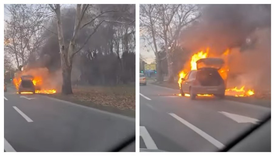 - Gori auto Batajnički drum smer ka Batajnici - piše u opisu snimka zapaljenog automobila koji se brzo proširio na društvenim mrežama.