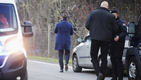 Екипа Танјуга и остали медији покушавају да уђу у Лештане са Смедеревског пута, на коме је гужва, али се возила крећу.