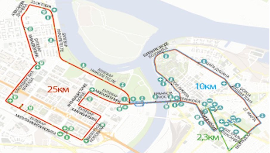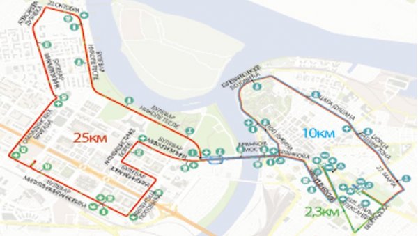 Старт на десет и 21 километар је у 10.00 часова, а многобројне линије градског саобраћаја возиће измењеним трасама до 15.00, када се враћају у стандардан режим. Осим аутобуса ЕКО2, 24, 26, 27, 31, 37 и 44 који ће до 17.00 часова саобраћати измењено.