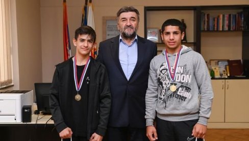 ТИНЕЈЏЕРЕ Елмедина Мету са Палилуле и Омера Османија из Сурчина, који су освајачи златних медаља у боксу, угостио је председник ГО Палилула Мирослав Ивановић.