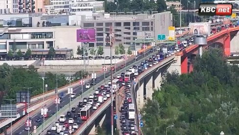 Бранков мост је закрчен у правцу ка старом делу града, а колона возила се простире све до Теразија.