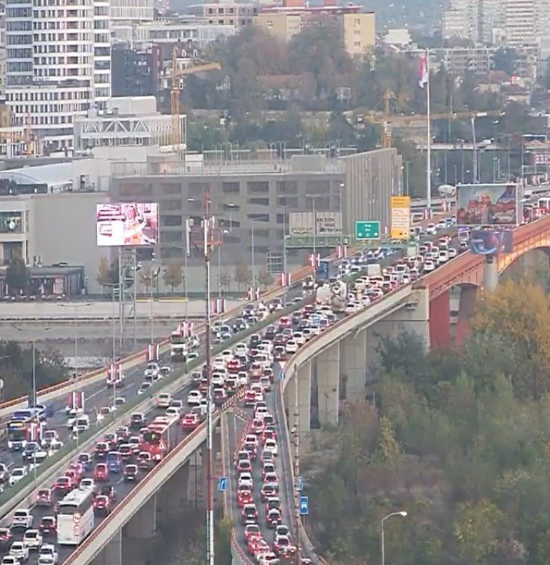 На Газели је створена колона возила у оба правца, док саобраћај нарочито споро тече из смера Новог Београда према Аутокоманди. На Бранковом мосту гужва је у смеру према Зеленом Венцу, док је у смеру према Новом Београду саобраћај проточан.
