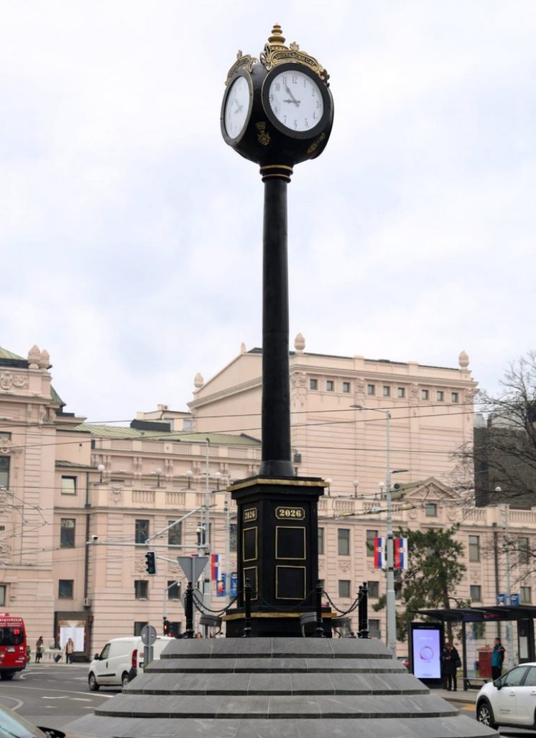 Иначе, како је нагласио, вредност целокупног уговора који обухвата израду носећег челичног стуба, постамента, кућишта за сат и куповину механизма часовника који се налази на врху, је 10 милиона динара. У оквиру тих 10 милиона, сам механизам часовника је вредности око пет милиона динара.