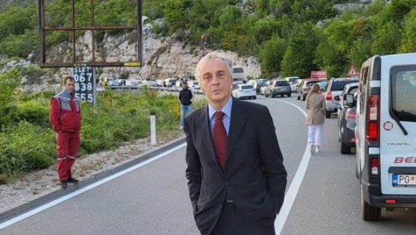 Иначе он, као и многи посланици и дипломате због блокаде магистрале од "комита", није могао стићи на Цетиње, на свечани пријем који је приредила шефица Делегације ЕУ у Подгорици Оана Кристина Попа.