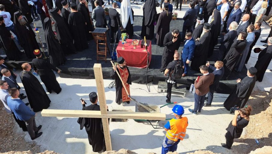 НА РАДОСТ ВЕРУЈУЋЕГ НАРОДА: Патријарх Порфирије и митрополит Јоаникије освештали камен темељац цркве и гимназије Свети Сава (ВИДЕО)