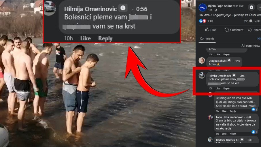 Овако је Хилмија Омериновић, Бјелопољац који борави у Скандинавији, честитао Богојављење суграђанима у коменатру испод текста о пливања у за Часни крст, на Богојављење у свом родном граду.