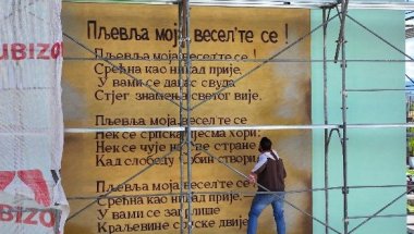 ПЉЕВЉА МОЈА, ВЕСЕЛ’ТЕ СЕ: Мурал са стиховима песме посвећене сусрет војски Краљевине Србије и Краљевине Црне Горе освануо у центру (ФОТО)