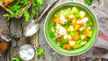 вечера: парче пројаре и супа од поврћа