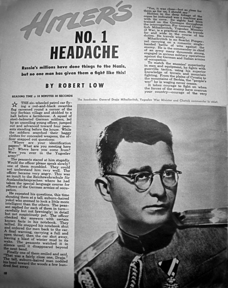 Тесла је до своје смрти остао искрен поштовалац краљевског дома Карађорђевић. А по сведочењу његовог блиског пријатеља, др Паје Радосављевића, био је одушевљен херојском борбом српског народа и дивио се вођи Југословенске војске у отаџбини, генералу Драгољубу Дражи Михаиловићу, који је, као први герилац Европе, тих година био звезда у америчким медијима. Амерички лист Тime објавио је Михаиловићев портрет на насловној страни. Орсон Велс и Винсент Прајс урадили су радио- -драму The chetniks, а у Холивуду је снимљен филм „Четници. Борбена Герила”. Филм је режирао Луис Кинг, док су главне улоге поверене Филипу Дорну и Ани Стен. Штампани оглас који је најављивао филм о четницима у САД завршавао се реченицом: „(...) Живите, волите, борите се са Дражом Михаиловићем и његовим борбеним герилцима”.