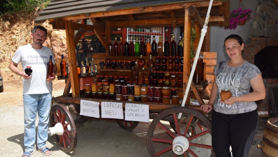 - Ни молерај, а ни моја плата од 36.000 динара нису довољни, па је ово начин да прехранимо породицу. Зарада је најбоља преко лета, јер овуда пролазе екскурзије, мада је ова година веома лоша, јер нема туриста од када су отворене границе. Зими продајемо преко интернета, јер имамо регистровано пољопривредно газдинство "Мијатовић" - вели Браниша и додаје да им помажу ћерка Лана и син Кристијан.