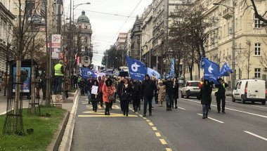 ПРОТЕСТ запослених у основном и средњем образовању, "За достојанство професије", у огранизацији Синдиката образовања Србије и Синдиката радника у просвети Србије, почео је око 12.30 у центру Београда, на Тргу Николе Пашића.