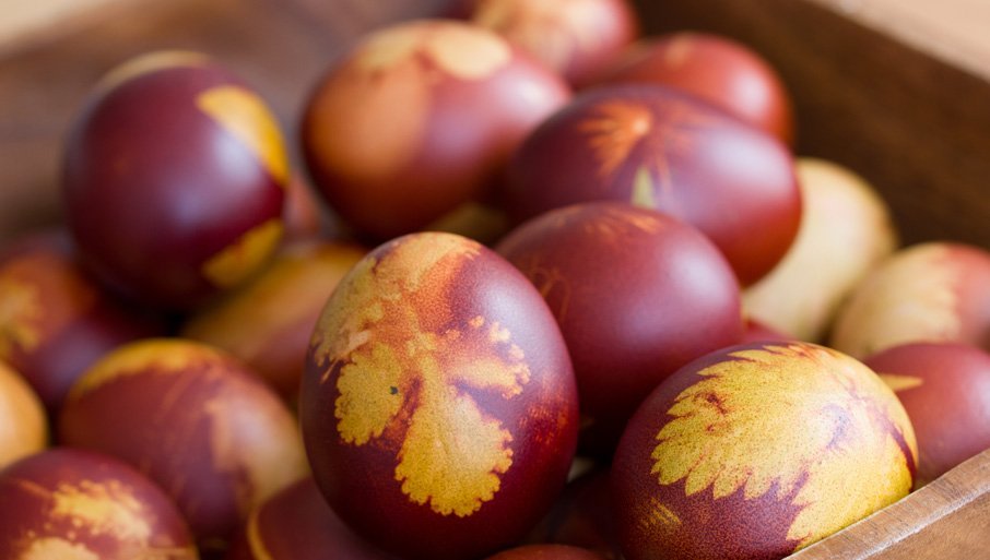 Бирајте нетоксичне боје за јаја - Многе куповне боје су направљене од нафте и других хемикалија које могу завршити у природним водотоковима, а нису добре ни за наше здравље. Зато, чуваркућу офарбајте варзилом и испробајте природне боје, попут оне добијене од луковице, воћа, поврћа и зачина. Црвени купус даће вам живахно - плаве нијансе, црвени лук жад - зелене, коприва тамније зелене, грожђани сок прелепу лаванду, паприка црвенкасту боју, док ћете розе добити мешањем коре и коштице авокада или фарбањем у наренданој цвекли. Деци дајте јаја да шарају искључиво прехрамбеним бојама.