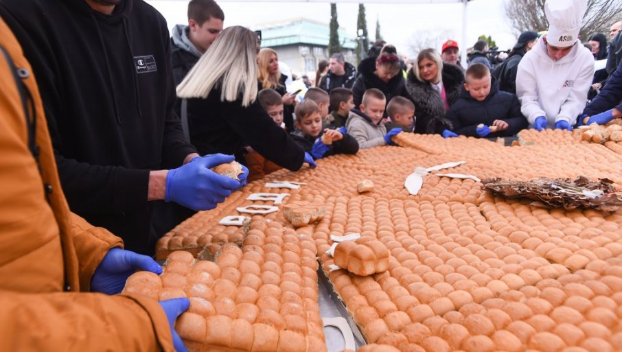 Ломљење чеснице уследило је након божићне литургије у Храму Светог Саве, а традиционално су га организовали Унија пекара Србије, "АС Браћа Станковић" и пекарски еснаф.