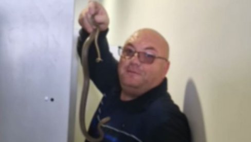 Овог гмизавца приметио је јуче ујутру један од радника када је ушао у гардеробу да се пресвуче. Он је истог момента обавестио своје надлежне који су потом позвали Владицу да их ослободи ове напасти, пише Југмедиа.
